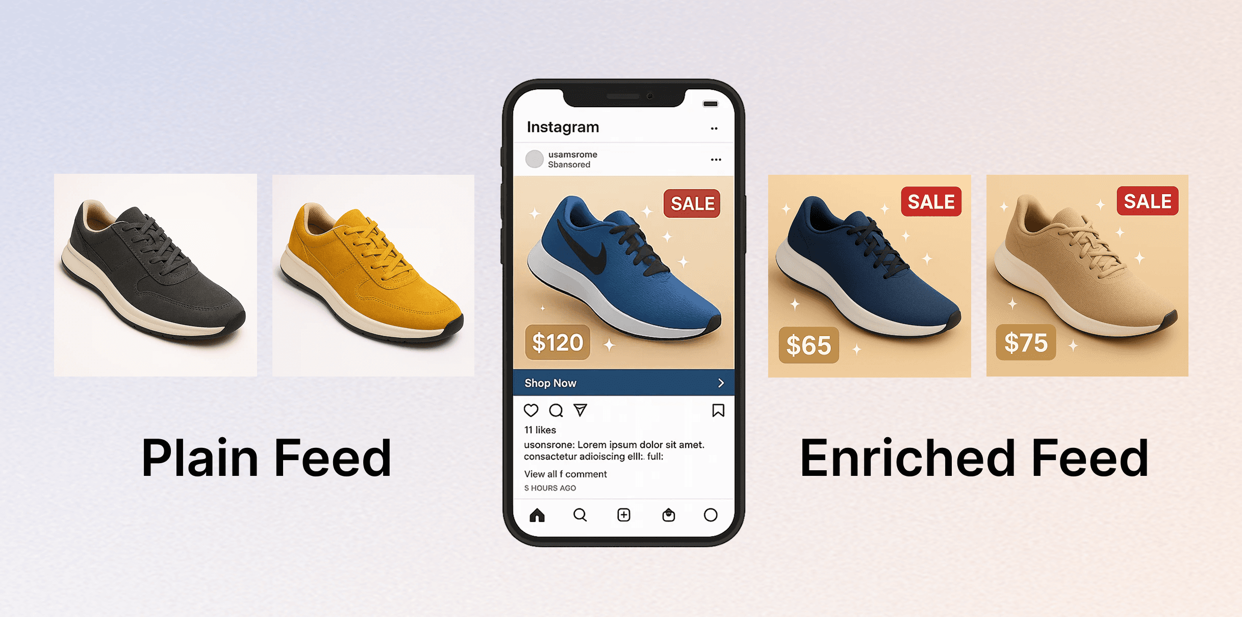 We enhance your product feed by turning basic catalog images into high-converting, visually enriched ads that drive engagement and sales.